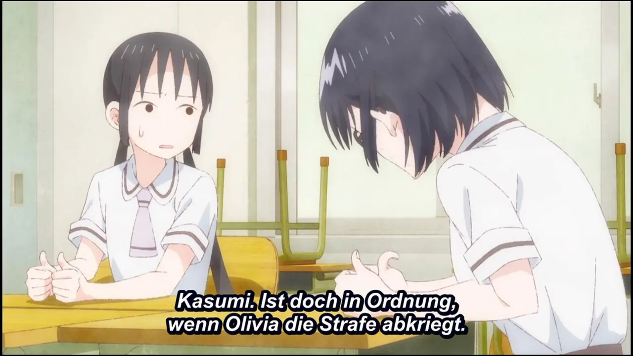 Hanako ist sportlich begabt aber etwas einfältig und hat einen seltsamen Sinn für Mode. Als sie mit der amerikanischen Austauschschülerin Olivia in der Klasse Schere-Stein-Papier spielt, werden sie vo...