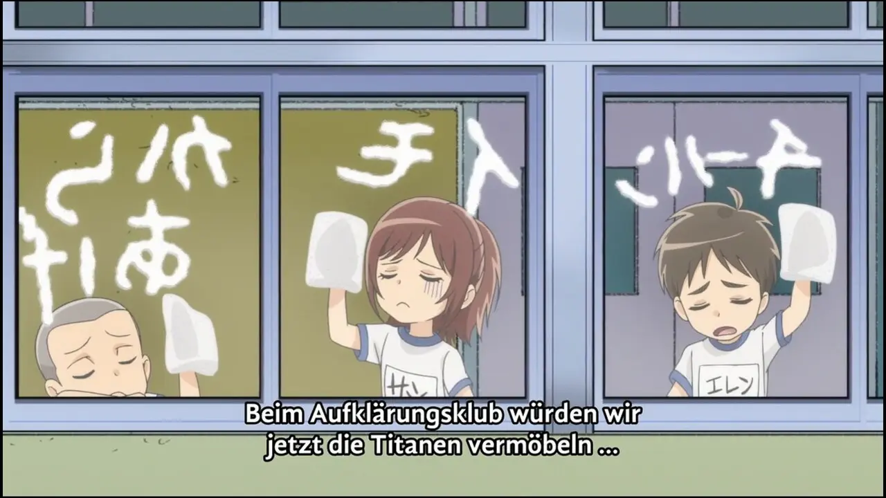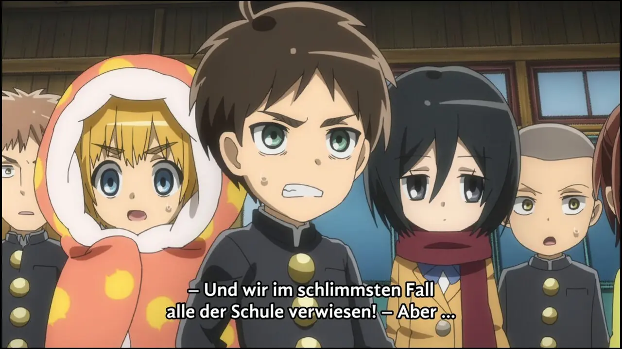 Attack on Titan: Junior High steckt die Geschichte des Originals statt in ein düsteres Fantasy-Setting, in eine heitere Schulkomödie. Die Geschehnisse spiegeln die Ereignisse der ersten Staffel von At...